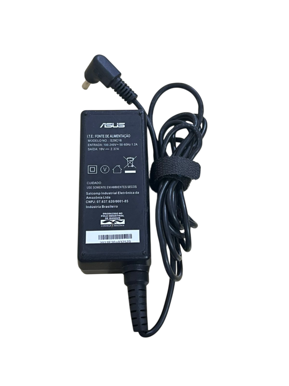 Fonte carregador original Asus, modelo S29C18, com potência de 45W. Fornece saída de 19V e 2,37A, garantindo alimentação estável e segura para seu notebook. Produto novo, adquirido de lote, podendo ou não conter marcas de uso ou riscos leves, mas nada que interfira no funcionamento. Acompanha cabo de força compatível.
