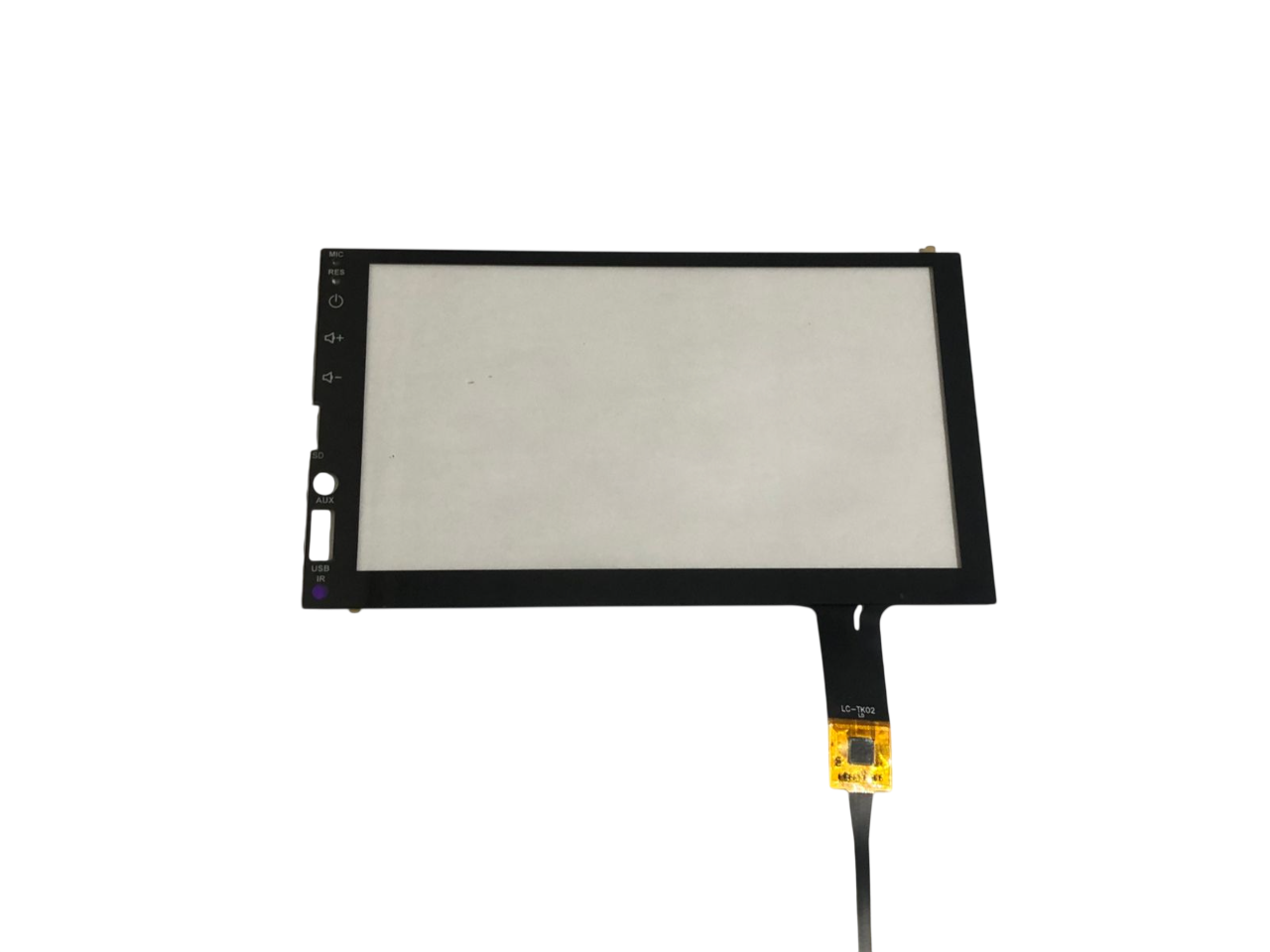 Tela touch screen de 7 polegadas indicada para reposição em centrais multimidia MP5 das marcas Etech, Taytech, Rayx e Htech, ou modelos compatíveis.